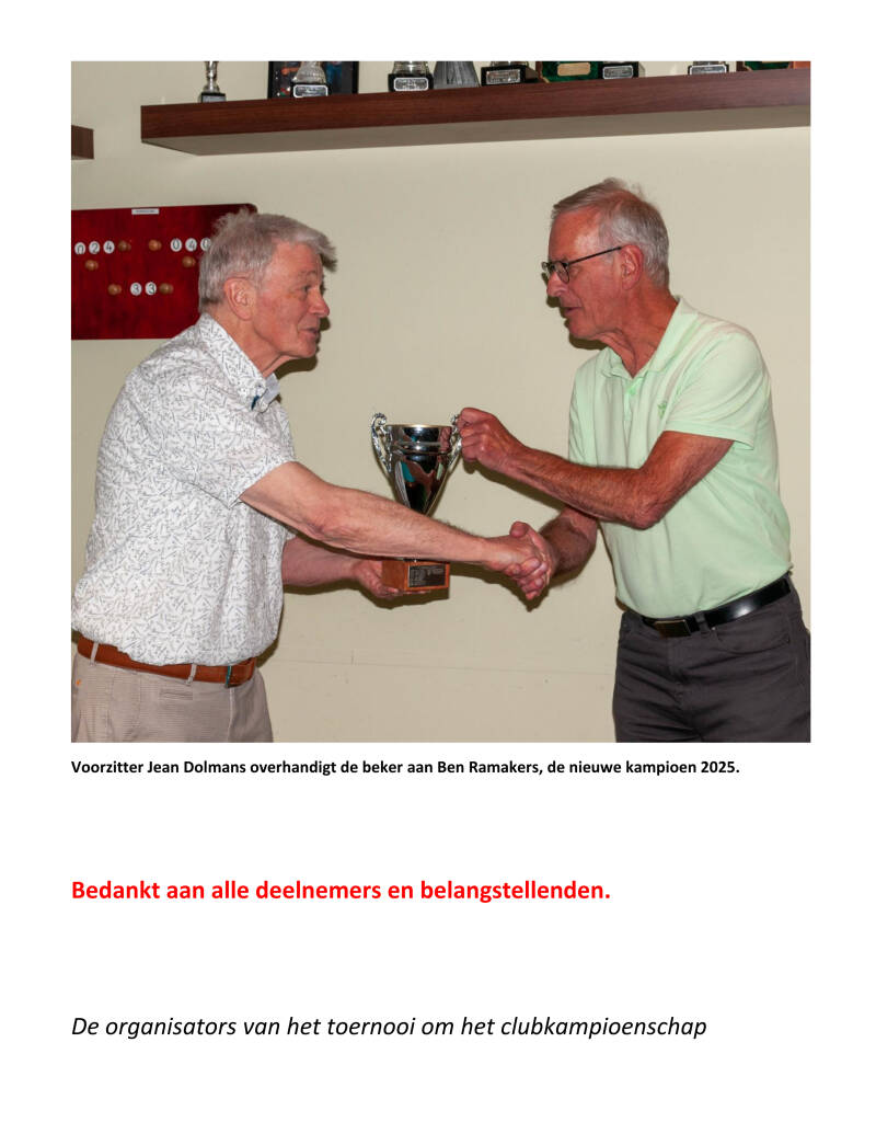 Doordat verschillende mensen door ziekte of een andere oorzaak hun toernooi niet konden uitspelen, hebben ca 5 mensen hun plaats ingenomen zonder mededingen. Zo konden toch alle wedstrijden gespeeld worden.